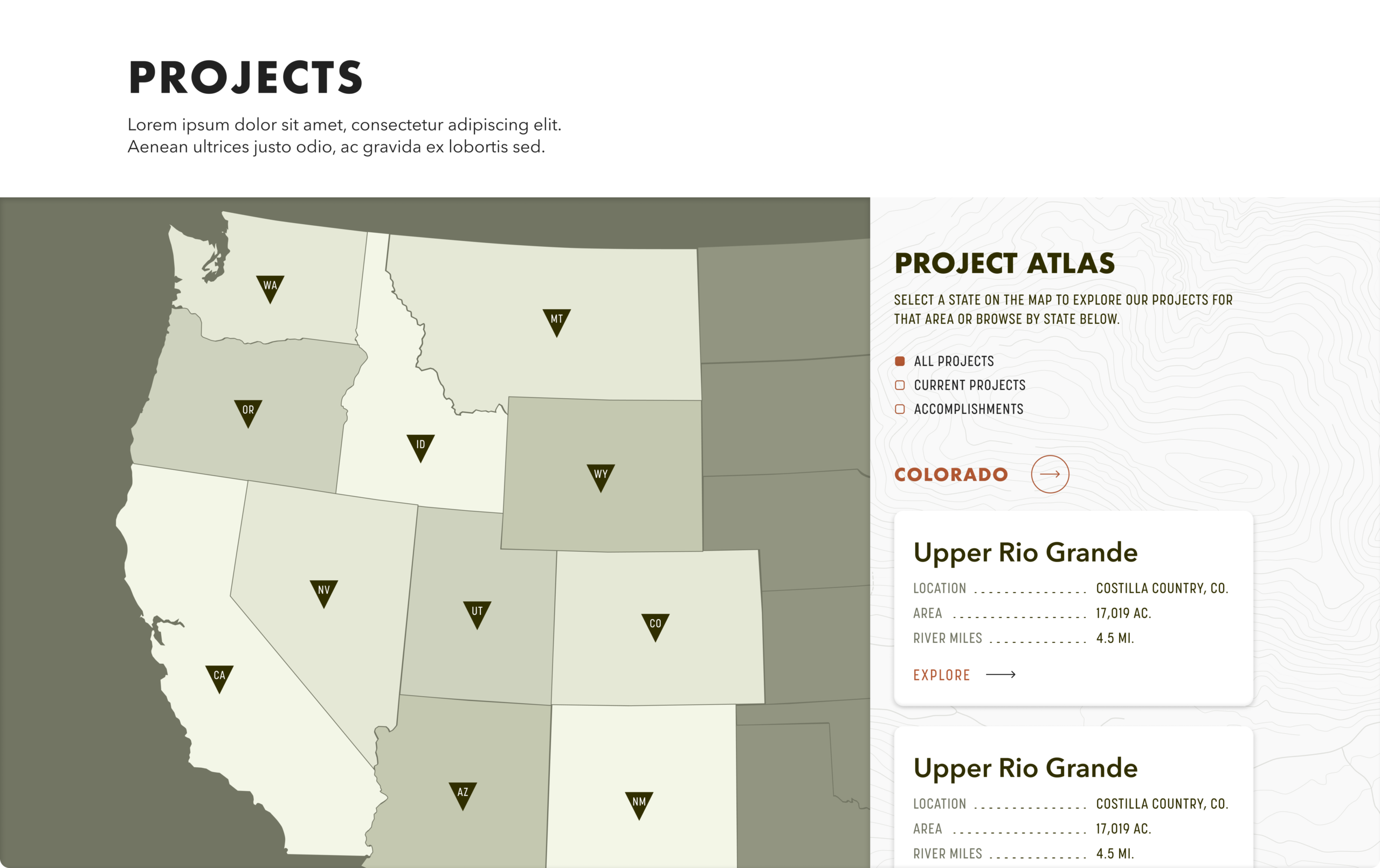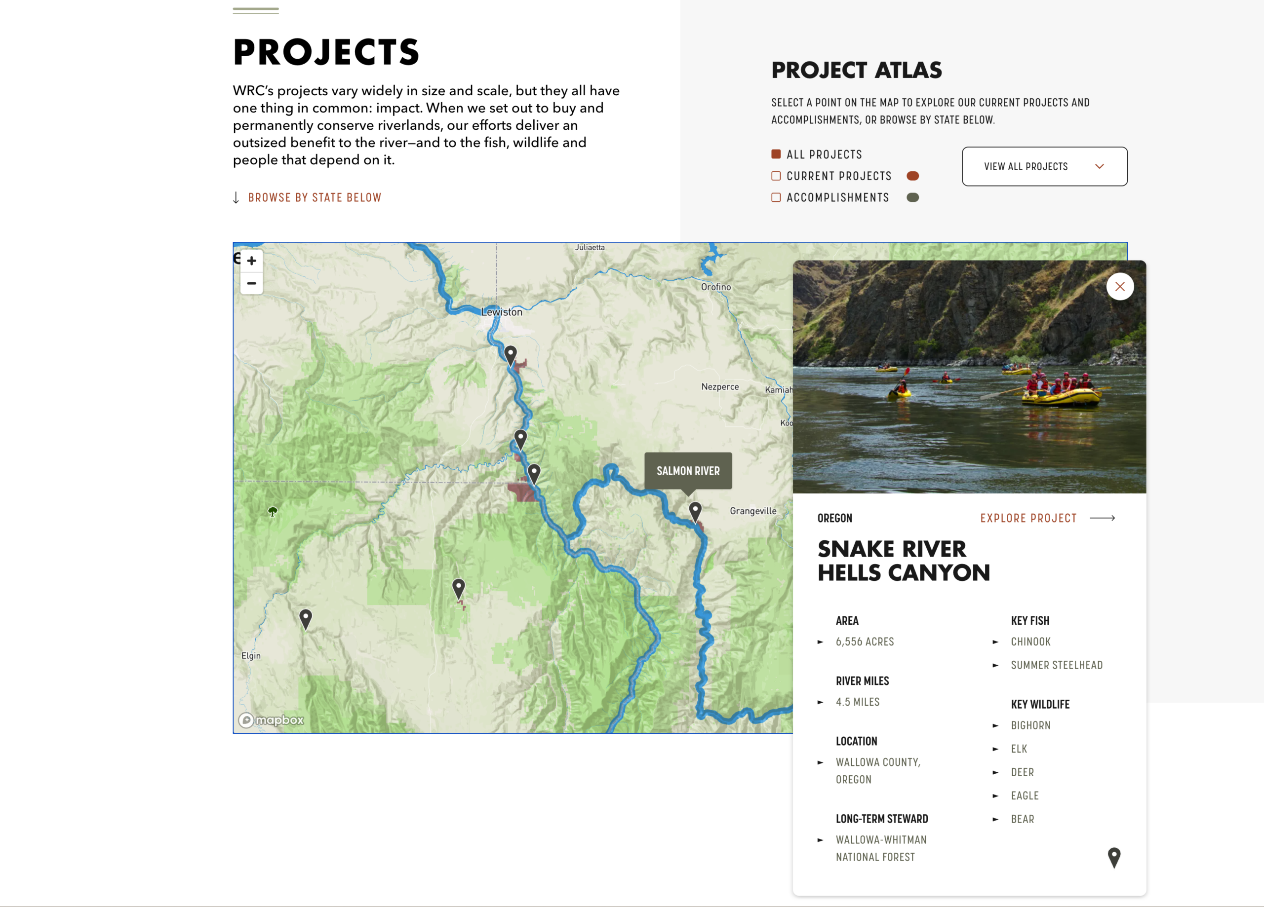 - Designed an interactive Project Atlas to visualize the scale of their efforts and allow exploration of their conservation projects